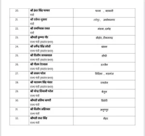जारी सूची के अनुसार, मुख्यमंत्री ने उपमुख्यमंत्री जगदीश देवड़ा को जबलपुर और देवास और राजेंद्र शुक्ल को सागर और शहडोल की जिम्मेदारी दी गई है.
